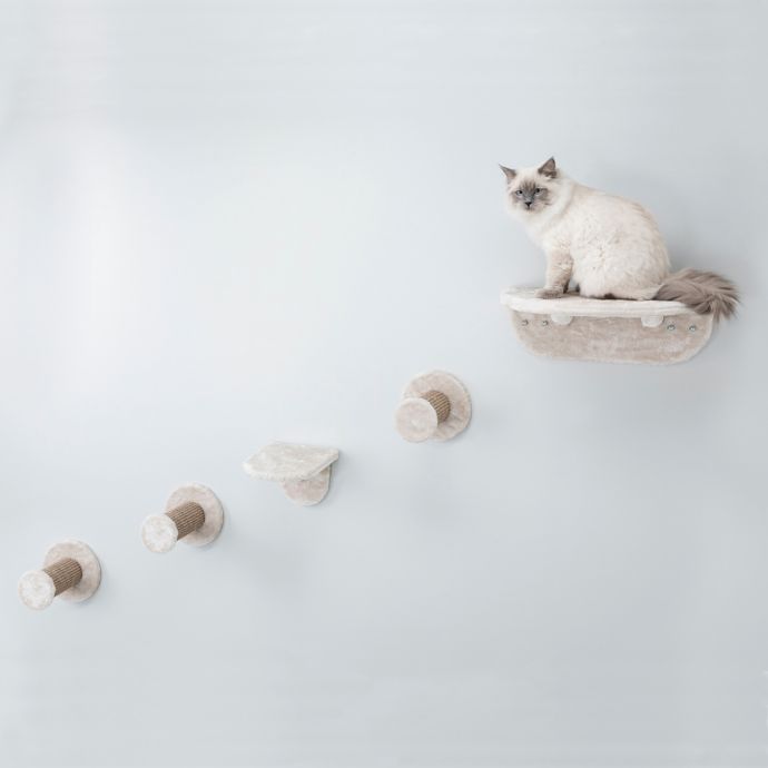 Arrange this trixie wall mounted cat lounging set to provide spaces for your cats to climb perch and stay up high.